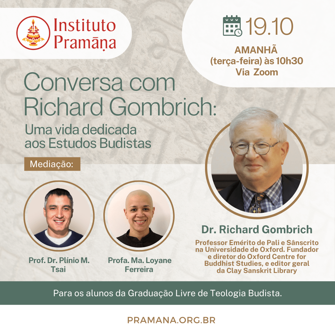 Amanhã às 10h30, receberemos no Instituto Pramāṇa, para uma conversa online, o Professor Emérito de Pali e Sânscrito da Universidade de Oxford, Richard Gombrich.