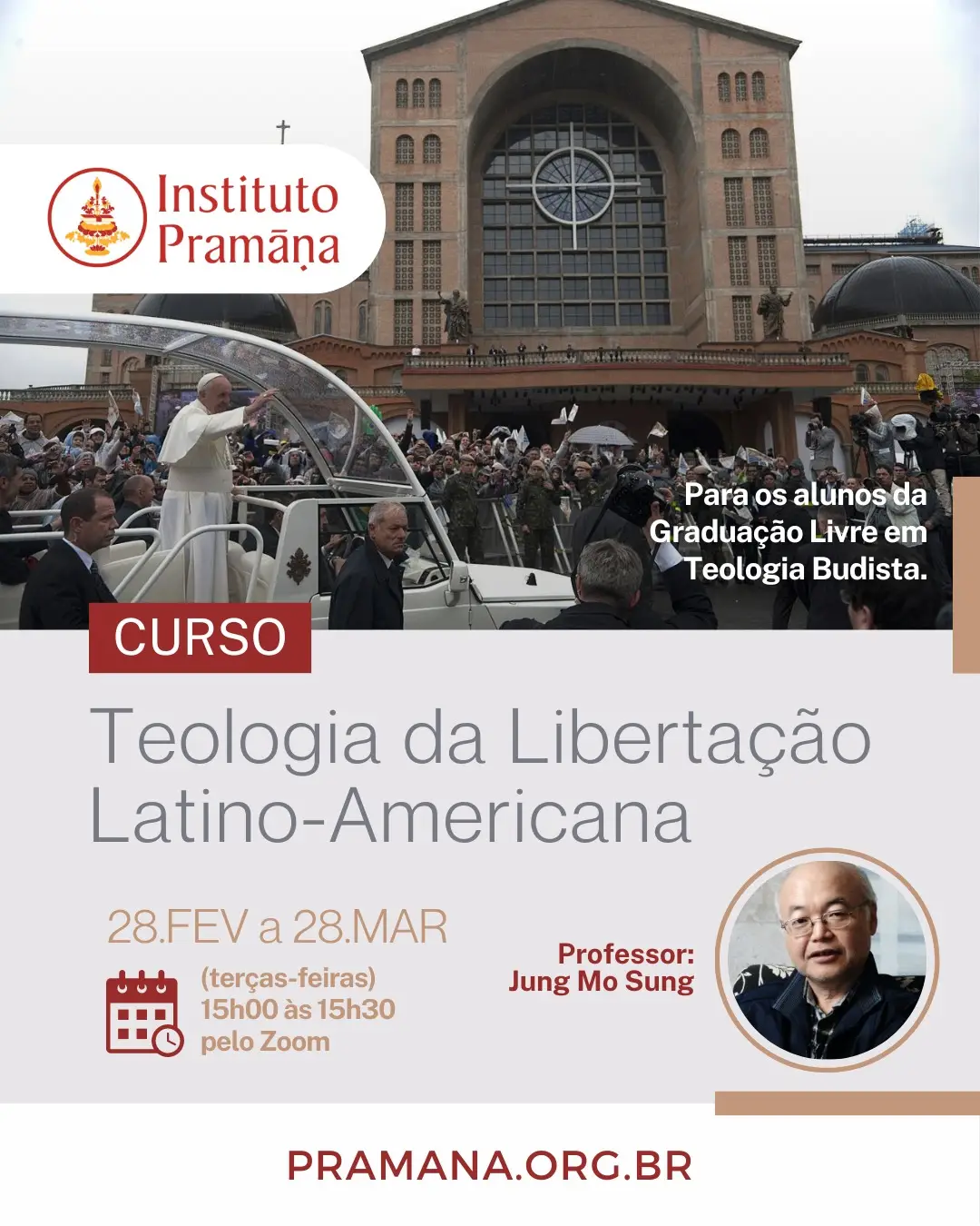 Vivemos em uma época de grandes problemas e desafios que vão definir o caminho da humanidade por muito tempo: a grande desigualdade social, a crise ambiental, a cultura neoliberal que enfraquece a democracia no campo político e os direitos humanos no campo social, e o avanço da inteligência artificial no campo tecnológico. Ao mesmo tempo, vemos no campo religioso a dificuldade em apresentar reflexões teológicas que enfrentem esses grandes desafios atuais a partir das suas identidades religiosas, que têm na sua origem sabedorias espirituais nascidas no mundo Antigo ou pré-moderno. É um dos papéis das teologias articular dialeticamente o que é “antigo”, que precisa ser mantido ou resgatado, e os desafios contemporâneos. O objetivo deste curso é apresentar o método e a originalidade teológica da Teologia da Libertação Latino-Americana com a finalidade de oferecer aos participantes, cristãos ou não, um caminho de reflexão metodológica que possa ser útil nas suas práticas e reflexões religiosas e sociais. Em especial, um método teológico que possa fortalecer o diálogo entre o cristianismo e o budismo em torno dos problemas acima apresentados.